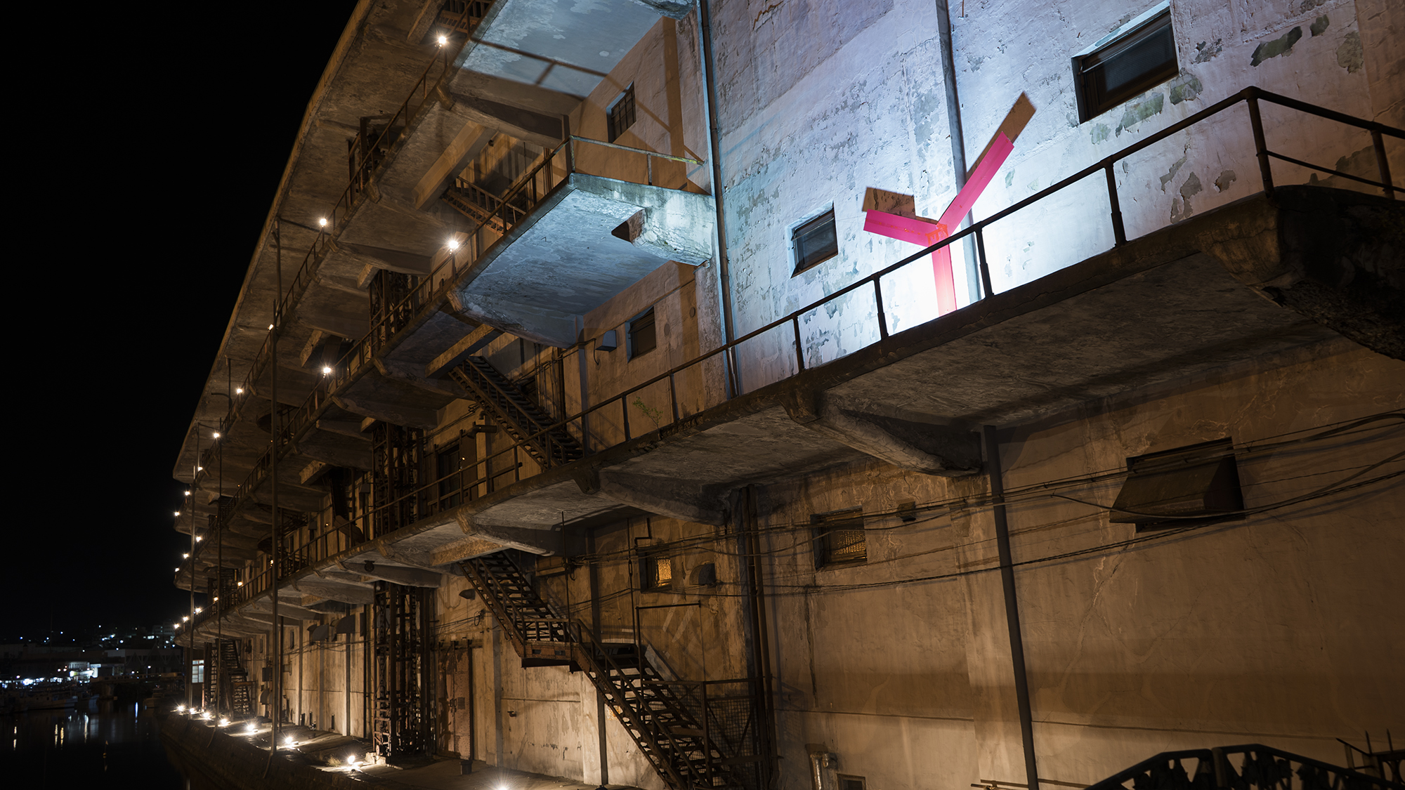 「建物が生きているかのような演出を狙い、歴史や物語が積み重なり、有機的存在と化したかのような、第3倉庫の『鼓動』」を”光”と”音”で様々なイメージを表現しました。